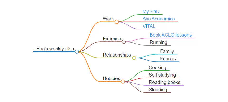 Please not that Mindmap can be written in markdown, but needs to be supported by a flexible platform, for example Wowchemy hugo template with a webpage output.